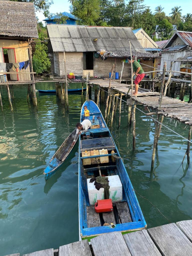 Sehari menjelang pelatihan batch 2 berakhir, kami juga mengunjungi tempat yang pemandagan lautnya indah sekali. Awalnya kami diundang Mbak Winarti, salah seorang peserta di batch 1, untuk datang ke rumah orang tuanya di Desa Bonelalo dalam rangka semacam doa bagi arwah leluhur menjelang dimulainya puasa Ramadhan. Kami bertiga diantar Syakir, ponakan dari Azas. Sesampai di Bonelalo, keluarga mbak Winarti masih menyiapkan makanan untuk doa arwah. Sambil menunggu, kami diajak Mbak Winarti ke Desa Talaga Baru, desa sebelah tempat bermukim warga dari suku Bajo. Pemerintah menetapkan mereka sebagai Komunitas Adat Terpencil (KAT). Kami menelusuri jalan di antara rumah-rumah panggung milik mereka yang riuh dengan anak-anak dan sesekali berhenti untuk berfoto atau melihat laut yang nampak di sela-sela bangunan rumah. Ketika matahari beranjak tenggelam, langit berubah warna, kami memutuskan untuk balik ke Bonelalo, rumah mbak Winarti.